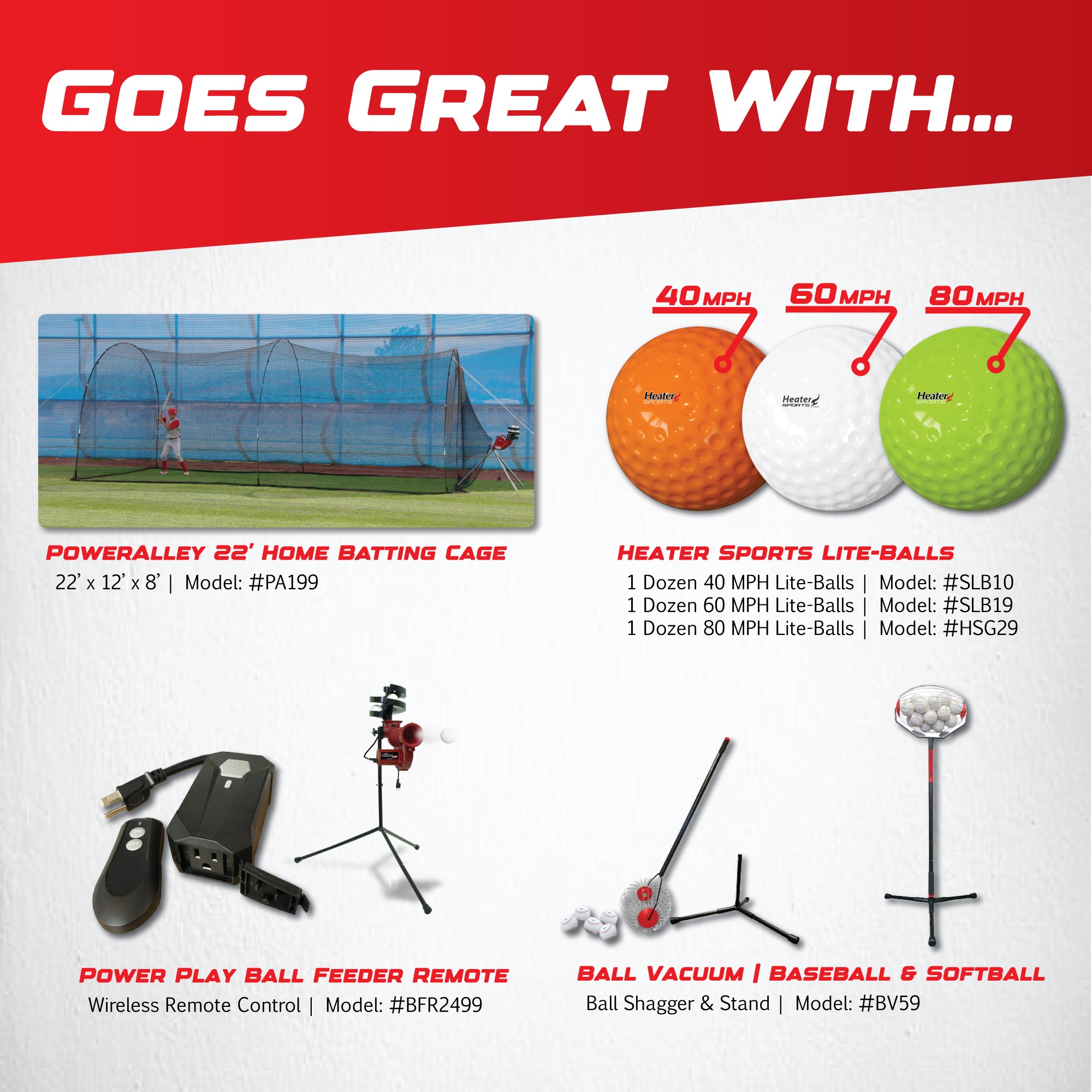 • Pitches Lite Balls Up To 80 MPH at 46 Feet (Depending on Ball)